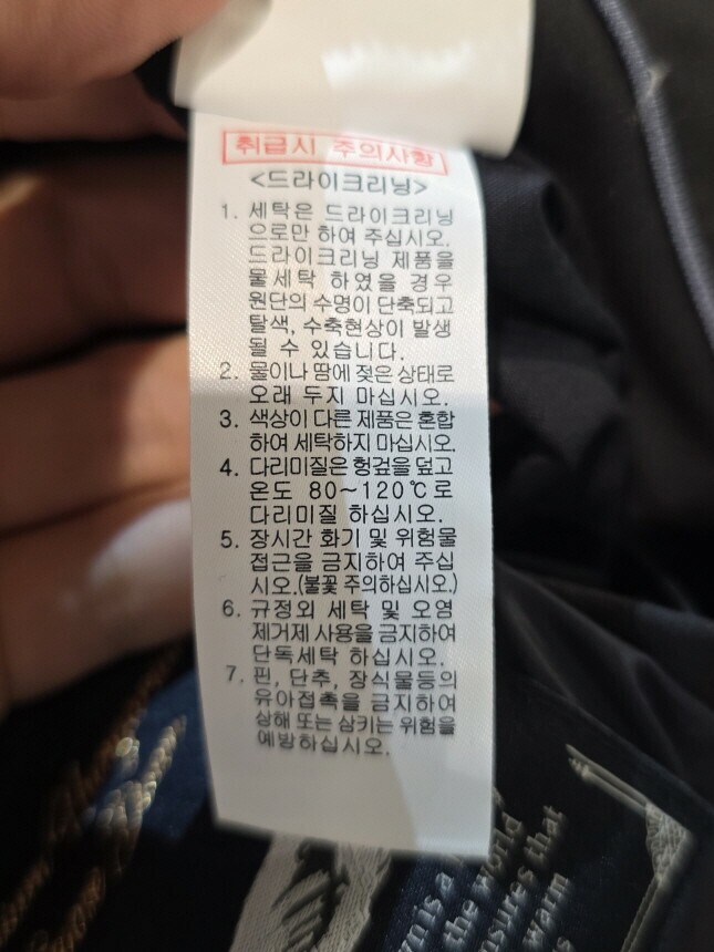| 6. 세탁방법 및 취급시 주의사항 | 드라이크리닝 |