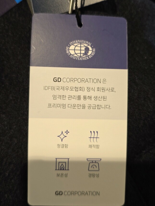 충전재 : 거위솜털 80% , 거위킷털 20%