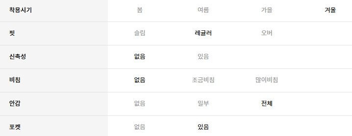| 6. 세탁방법 및 취급시 주의사항 | 상품상세참조 |