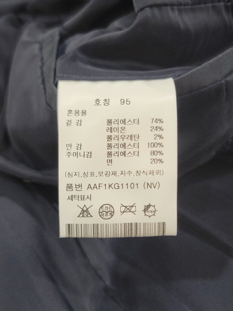 | 1. 제품 소재 (섬유의 조성 또는 혼용률을 백분율로 표시, 기능성인 경우 성적서 또는 허가서) | 겉감: 폴리에스테르 74%, 레이온 24%, 폴리우레탄 2% |
