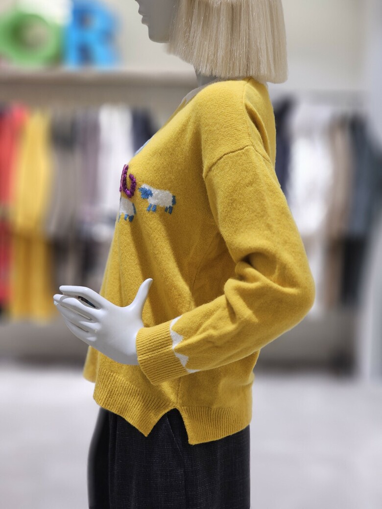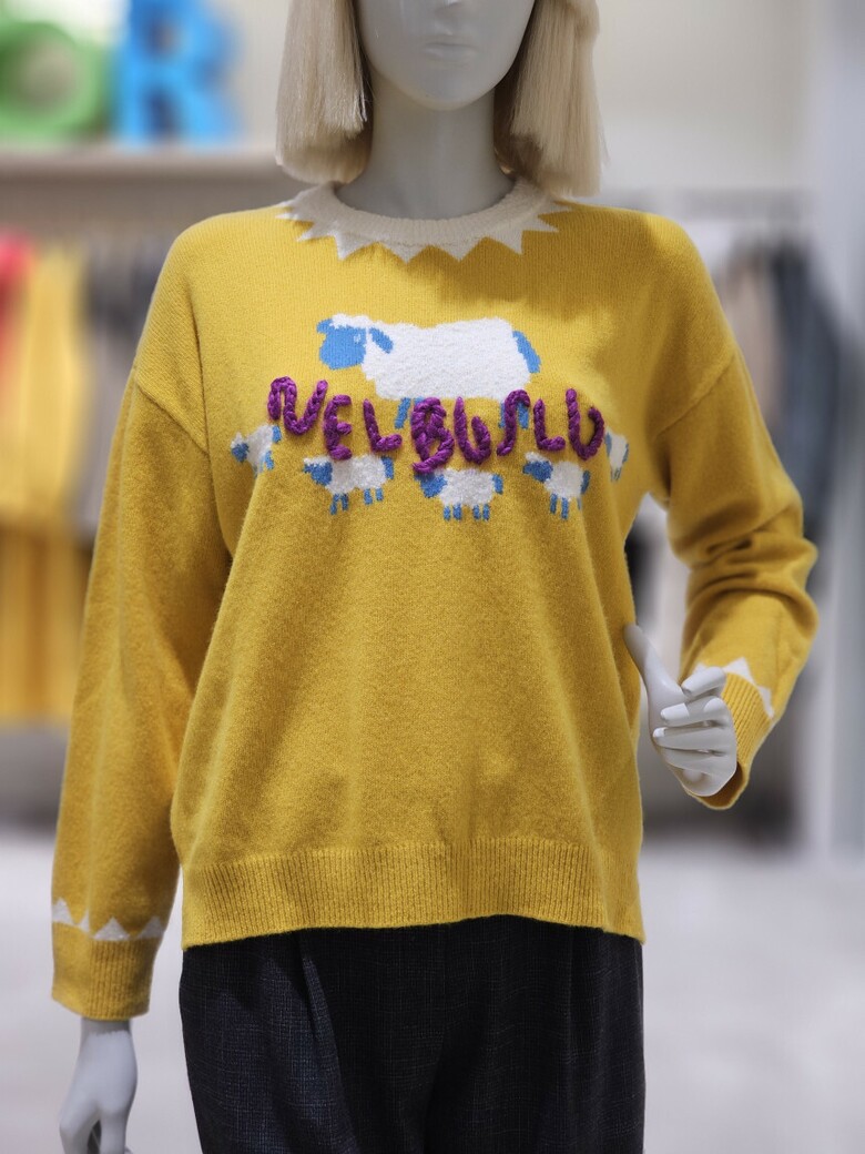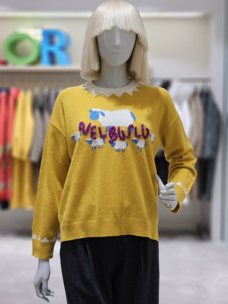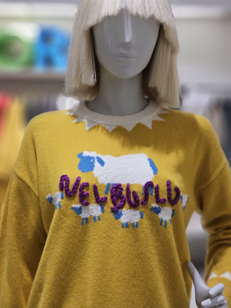 양 모티브와 입체적인 레터링 자수로 포인트를