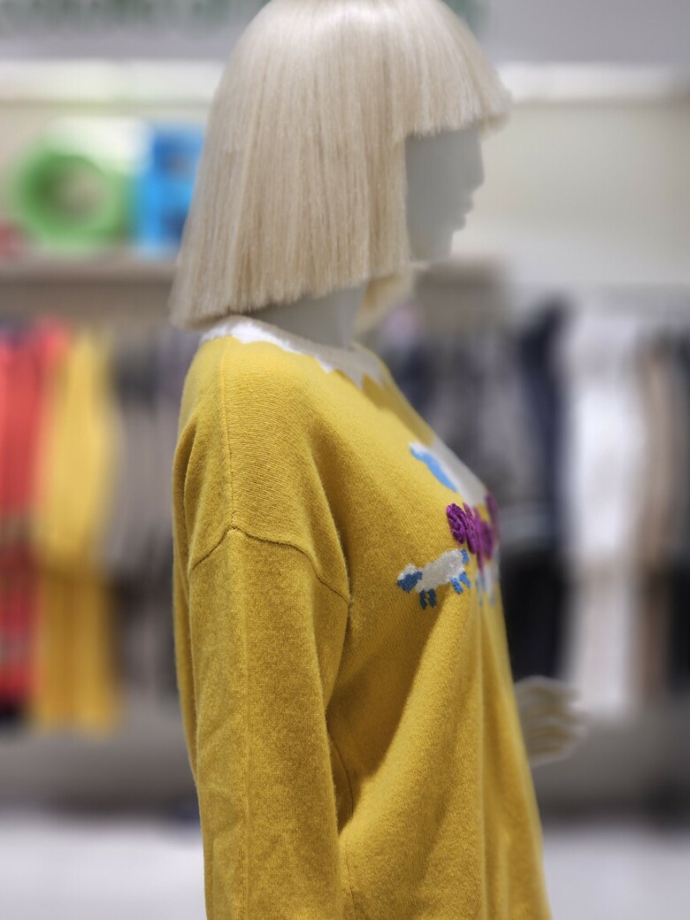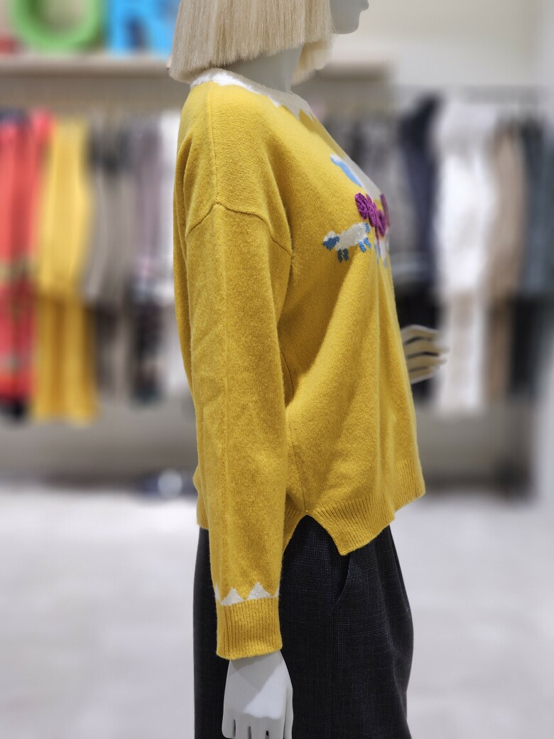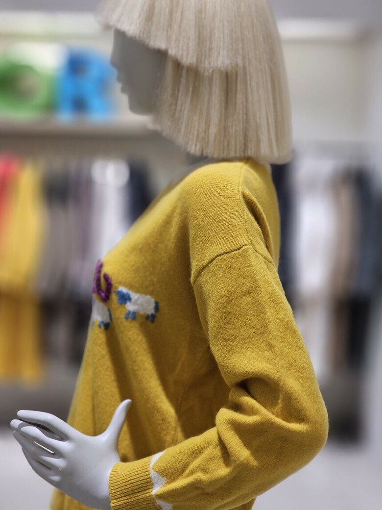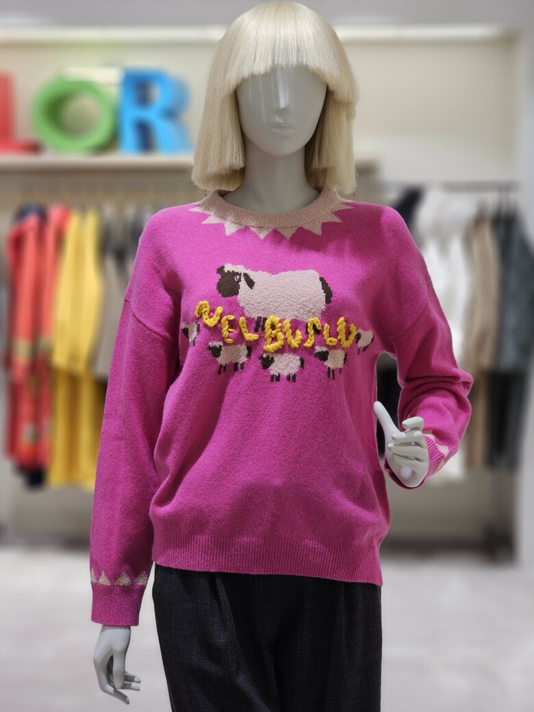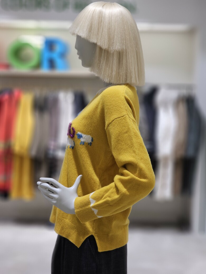 양 모티브와 입체적인 레터링 자수로 포인트를