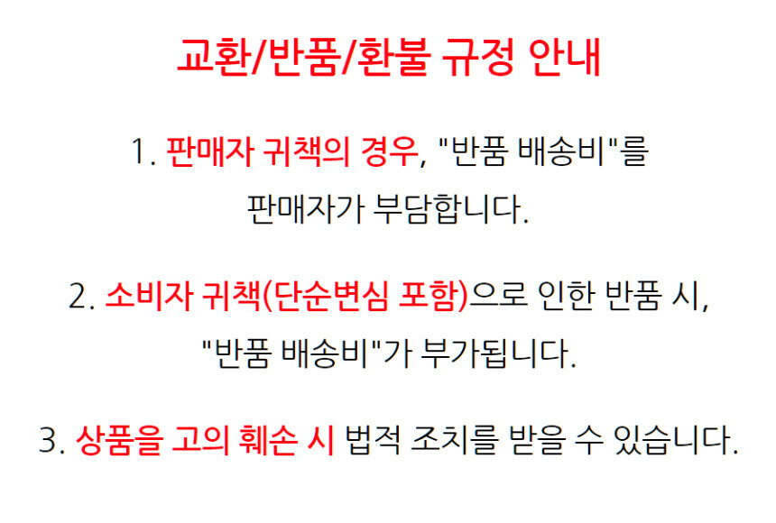 상품불량에 의한 반품, A/S, 품질보증 및 피해보상 등에 관한 사항은 소비자 분쟁해결기준(공정거래위원회 고시) 구매자가 미성년자인 경우에는 상품 구입시 법정대리인이 동의하지 아니하면 미성년자 본인 또는 법정대리인이 구매취소 할 수 있습니다. |