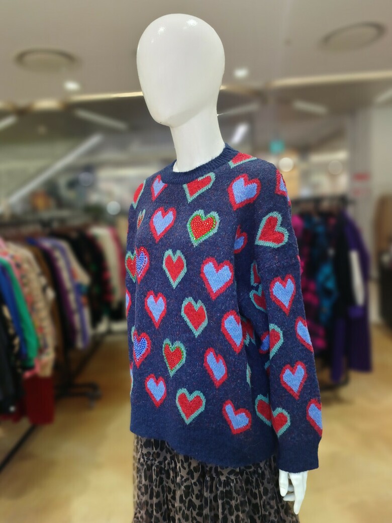 르니앤맥코이 하트큐빅 패턴 라운드넥 니트MM12KN703