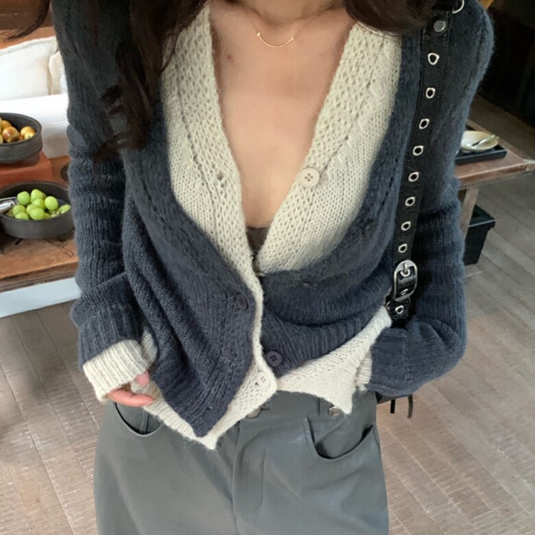 투톤 레이어드 배색 니트 가디건 4COLOR_251012_JY070