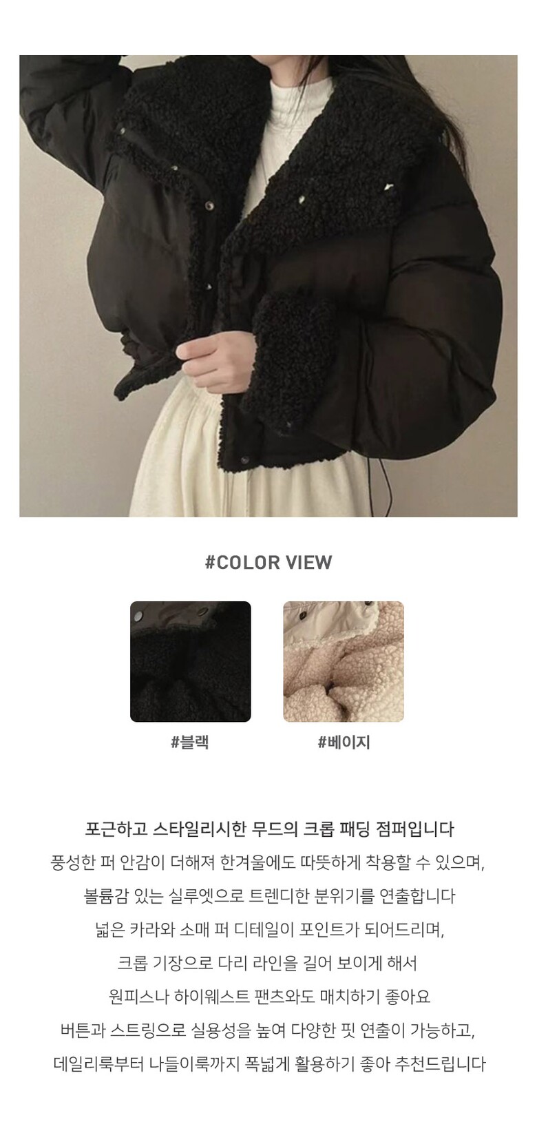 [~88까지]사샤 소프트 데일리 테디 배색 크롭 패딩 점퍼