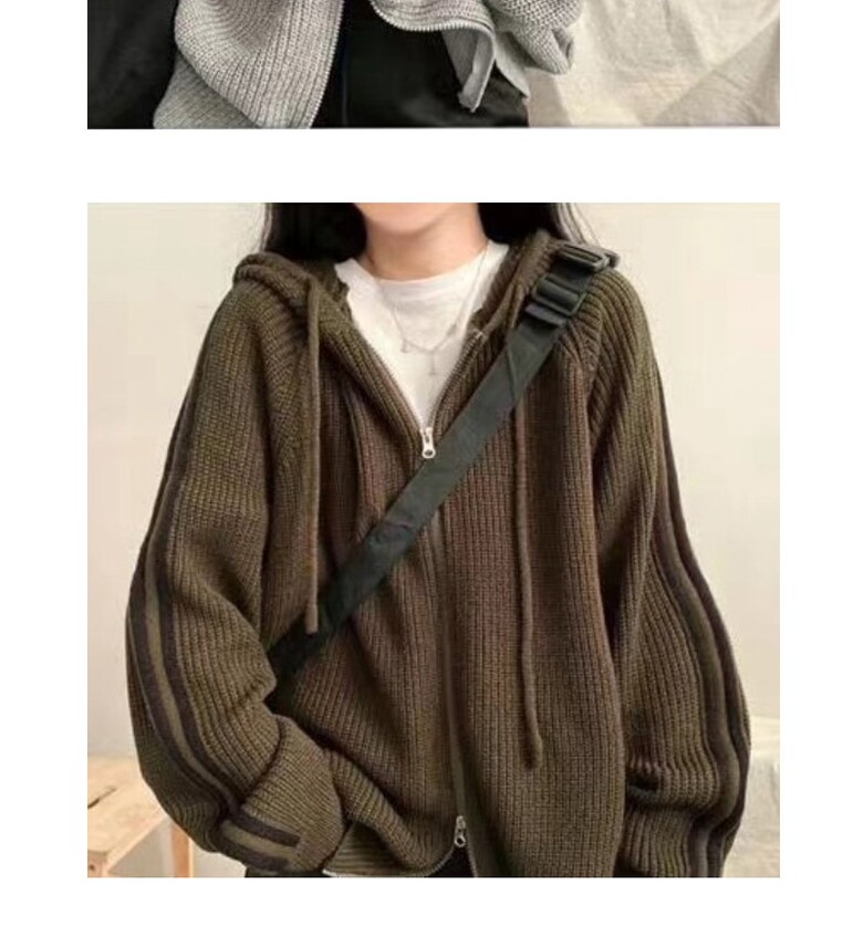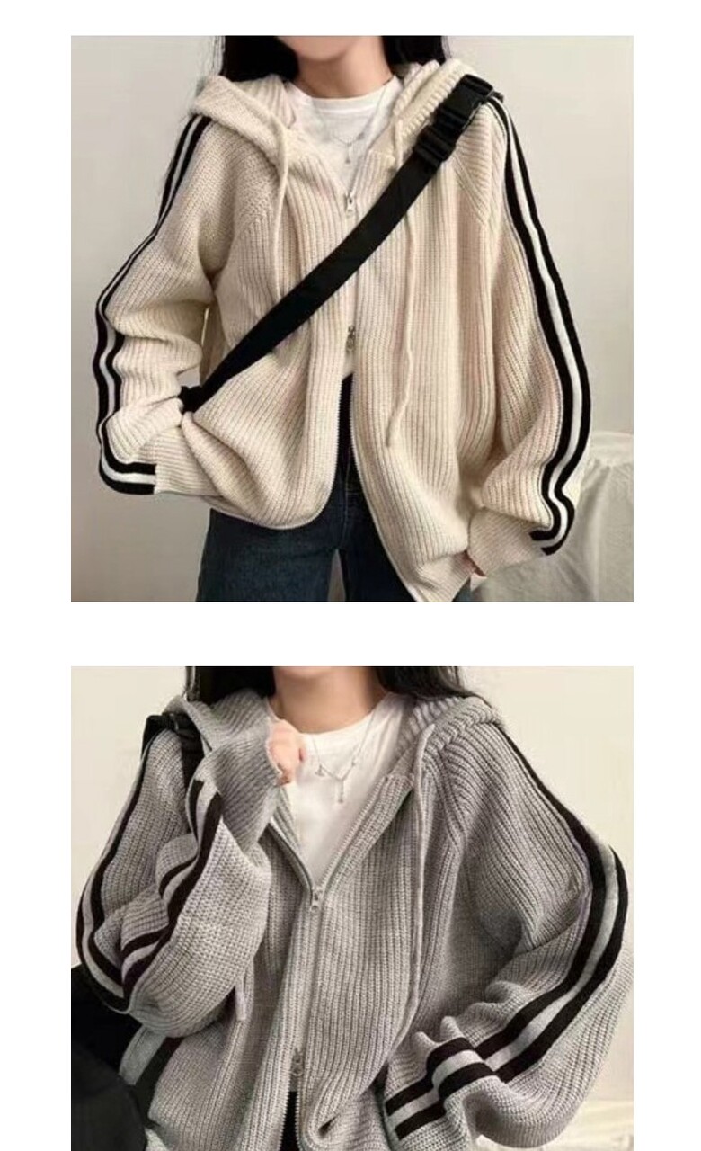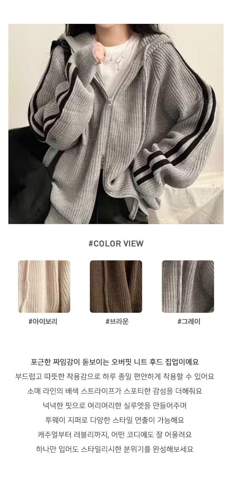 니디 투라인 배색 니트 후드 투웨이 집업 가디건