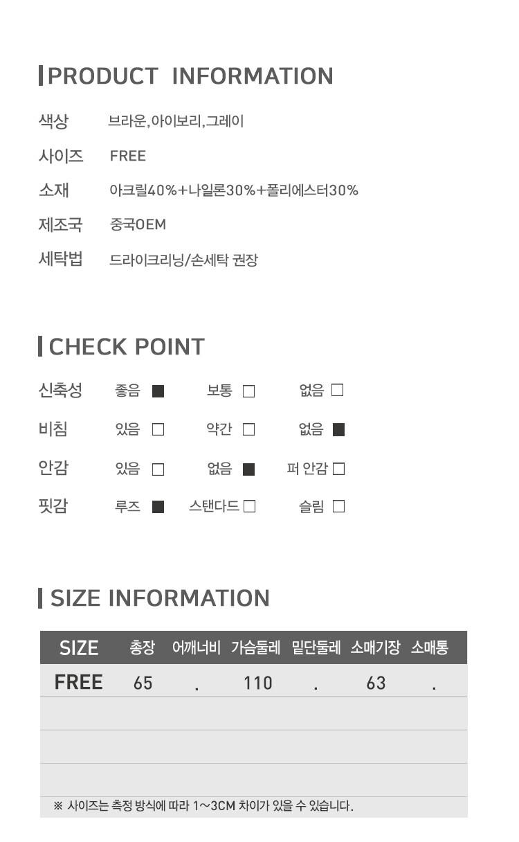 | 1. 제품 소재 (섬유의 조성 또는 혼용률을 백분율로 표시, 기능성인 경우 성적서 또는 허가서) | 상세페이지참고 |