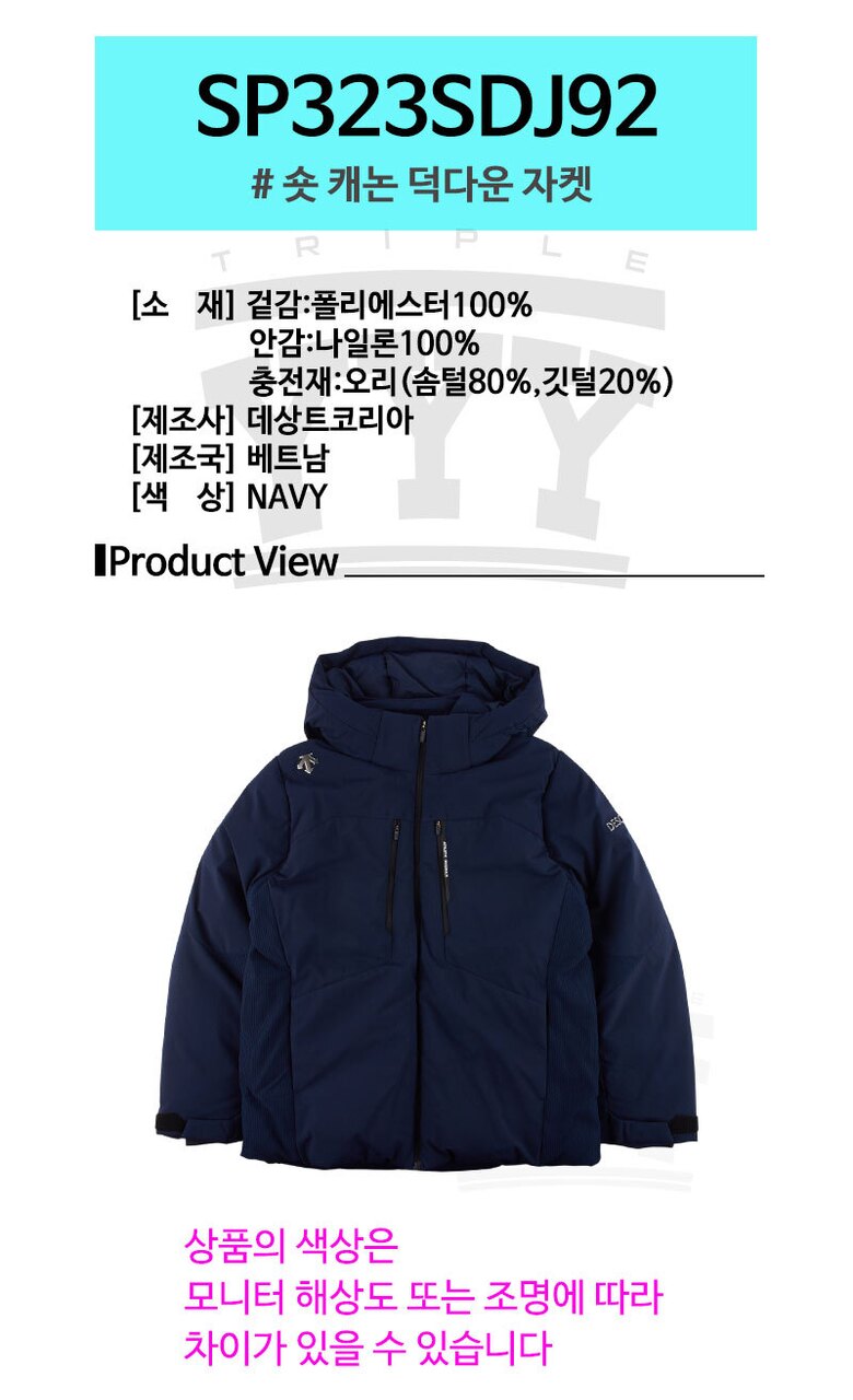 데상트 숏 캐논 덕다운 자켓 SP323SDJ92 NAVY