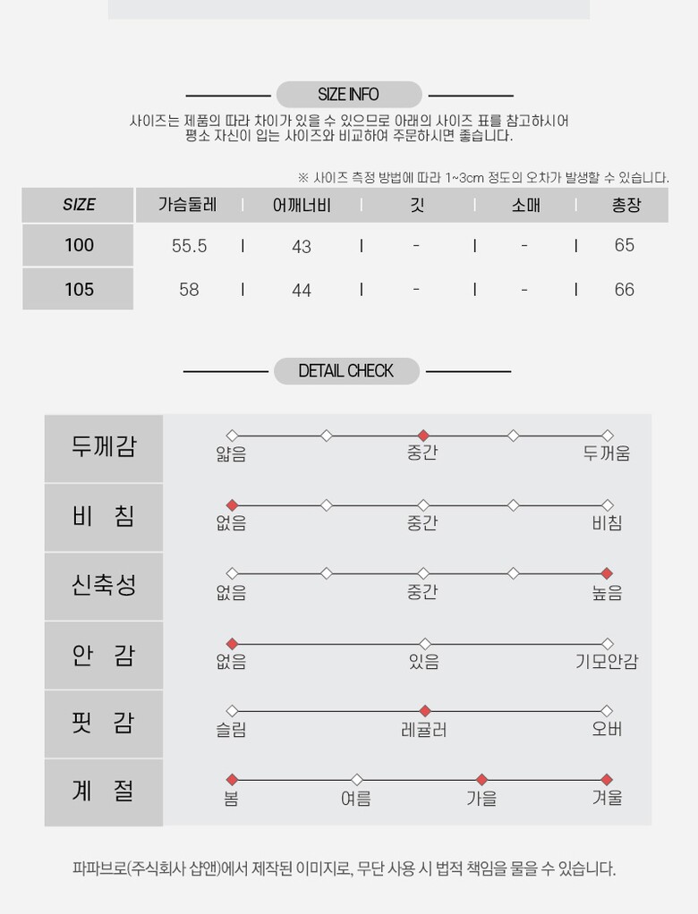 • 처음 배송된 상품상태와 다를 경우(세탁/착용 후 외출하신 경우) 반품이 불가합니다.