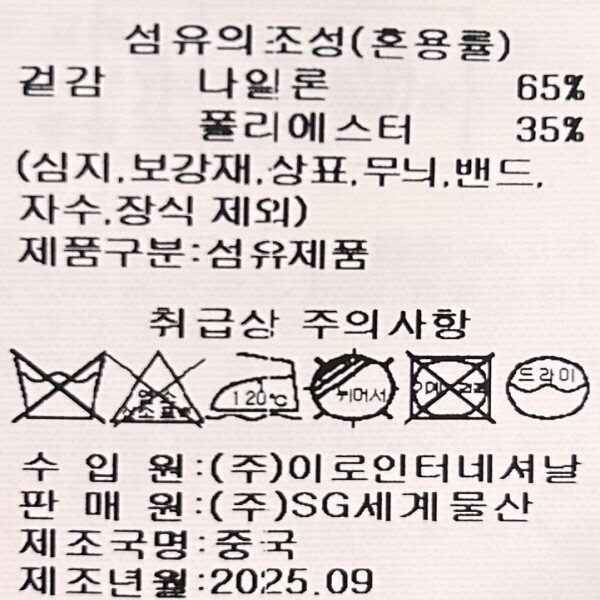 제품소재 : 겉감-나일론65% 폴리에스터35%