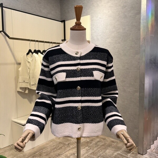 2025년 f/w 신상?라운드 배색 단추 가디건 입니다.