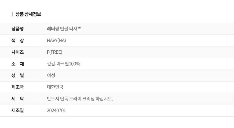 | 6. 세탁방법 및 취급시 주의사항 | 상세페이지 참조 |
