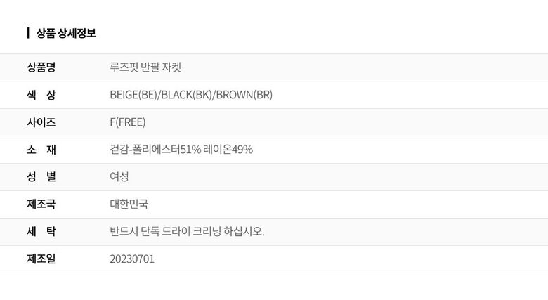 | 6. 세탁방법 및 취급시 주의사항 | 상세페이지 참조 |