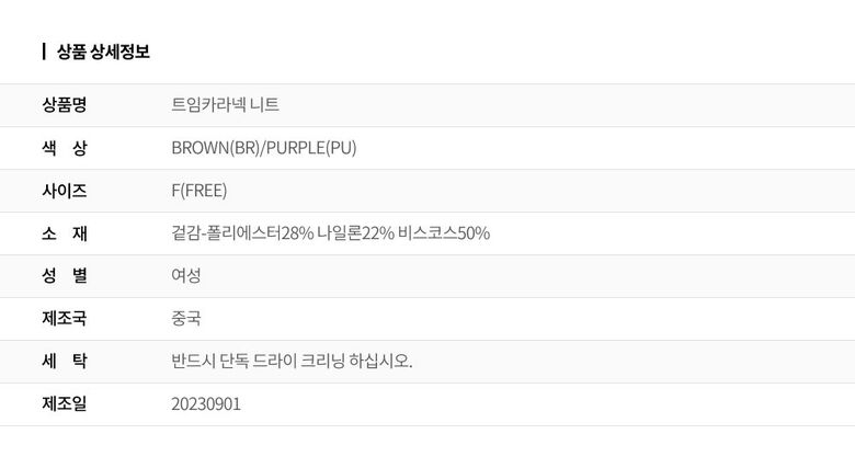 | 6. 세탁방법 및 취급시 주의사항 | 상세페이지 참조 |