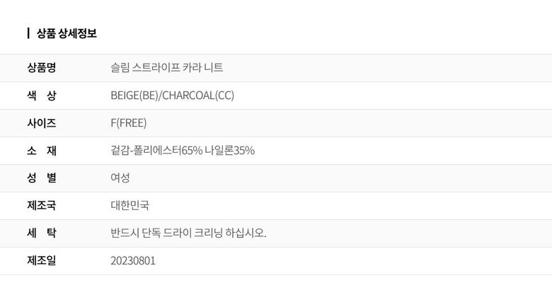 | 2. 색상 | 색상:BEIGE(BE)/CHARCOAL(CC) |