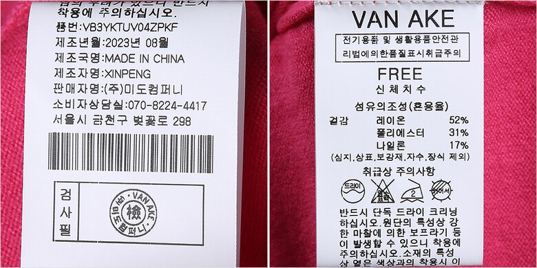 | 1. 제품 소재 (섬유의 조성 또는 혼용률을 백분율로 표시, 기능성인 경우 성적서 또는 허가서) | 겉감-폴리에스터31% 나일론17% 레이온52% |
