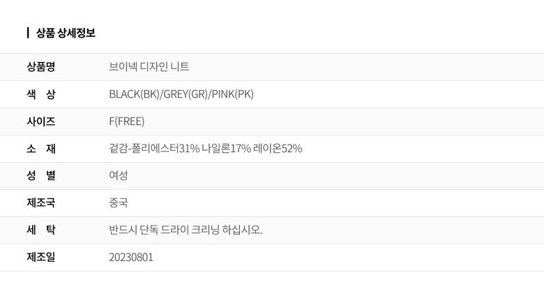 | 2. 색상 | 색상:BLACK(BK)/GREY(GR)/PINK(PK) |