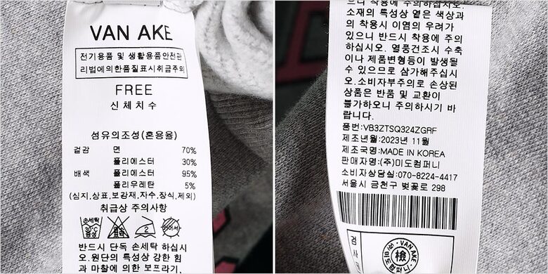 | 1. 제품 소재 (섬유의 조성 또는 혼용률을 백분율로 표시, 기능성인 경우 성적서 또는 허가서) | 겉감-면70% 폴리에스터30% 배색-폴리에스터95% 폴리우레탄5% |
