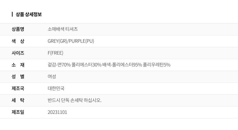 | 2. 색상 | 색상:GREY(GR)/PURPLE(PU) |
