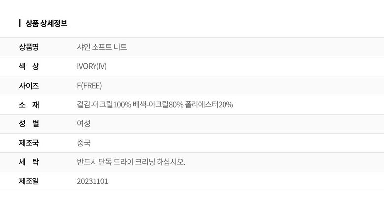 | 2. 색상 | 색상:IVORY(IV) |