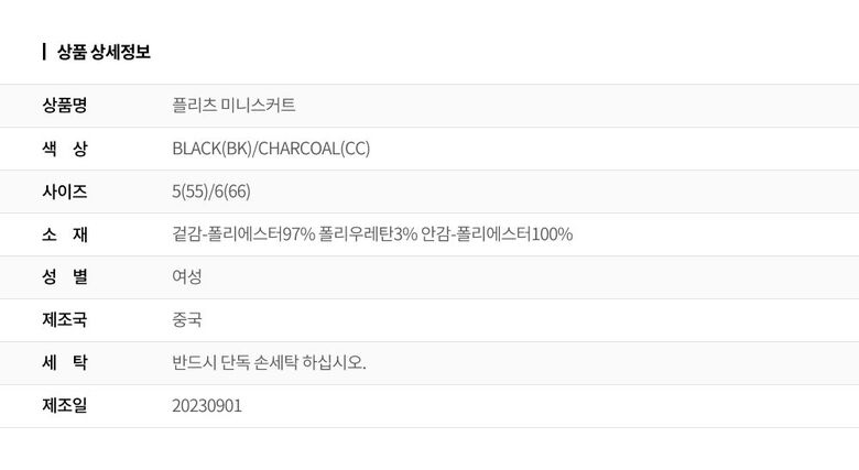 | 6. 세탁방법 및 취급시 주의사항 | 상세페이지 참조 |