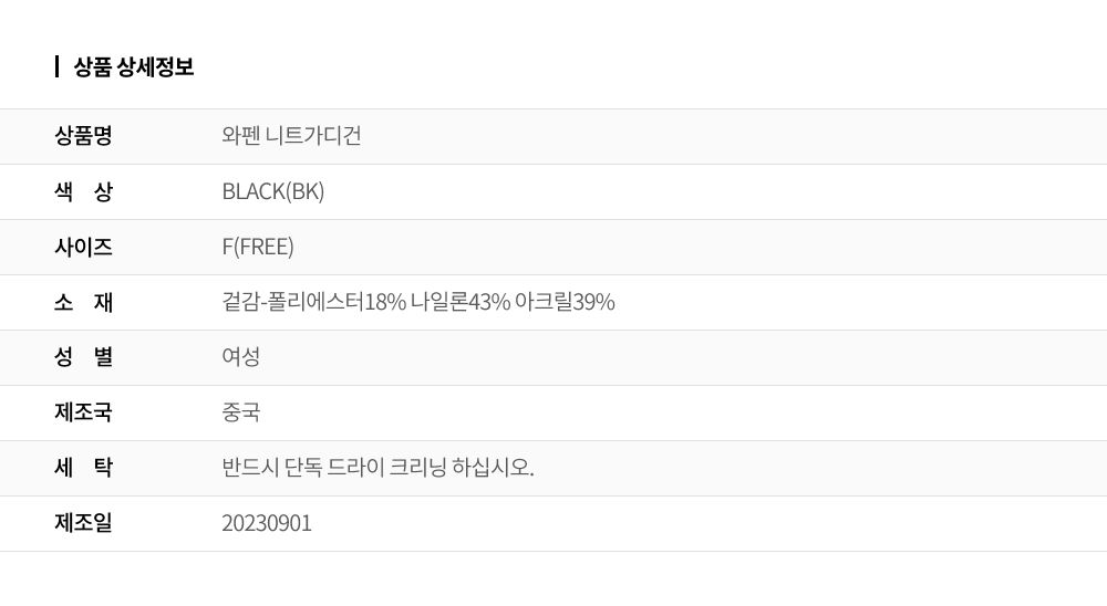 | 6. 세탁방법 및 취급시 주의사항 | 상세페이지 참조 |