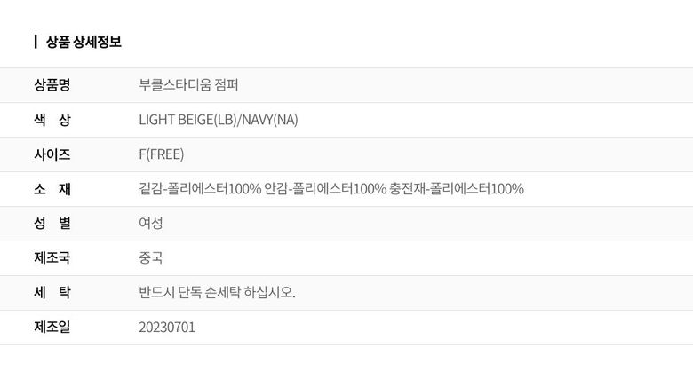 | 6. 세탁방법 및 취급시 주의사항 | 상세페이지 참조 |
