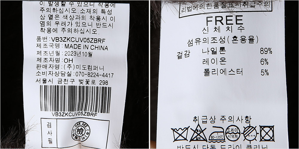 | 6. 세탁방법 및 취급시 주의사항 | 상세페이지 참조 |