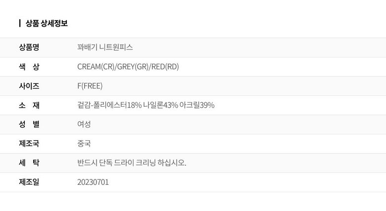 2. 색상 색상:CREAM(CR)/GREY(GR)/RED(RD)