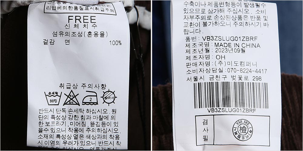 | 6. 세탁방법 및 취급시 주의사항 | 상세페이지 참조 |
