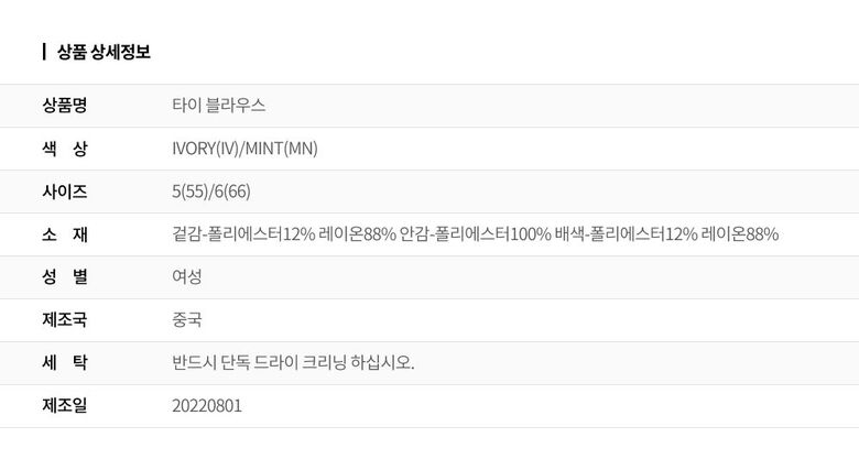 | 2. 색상 | 색상:IVORY(IV)/MINT(MN) |