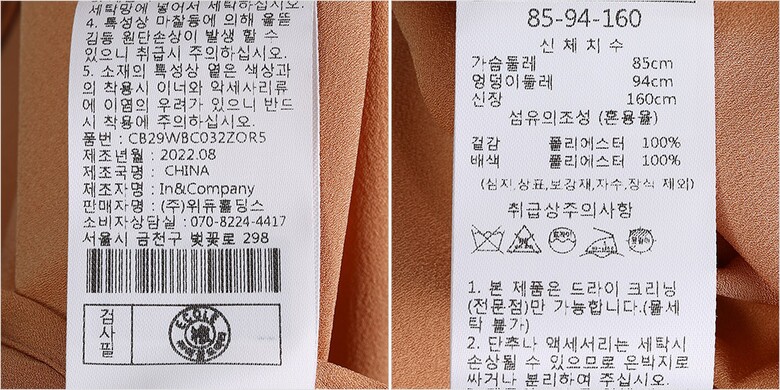 • 처음 배송된 상품상태와 다를 경우(세탁/착용 후 외출하신 경우) 반품이 불가합니다.