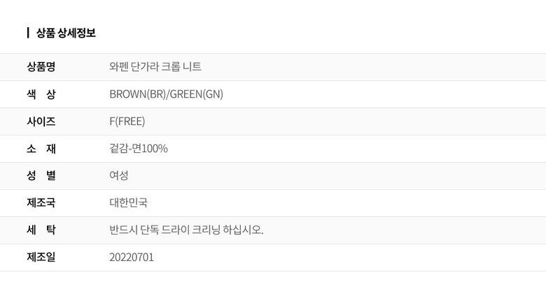 | 6. 세탁방법 및 취급시 주의사항 | 상세페이지 참조 |