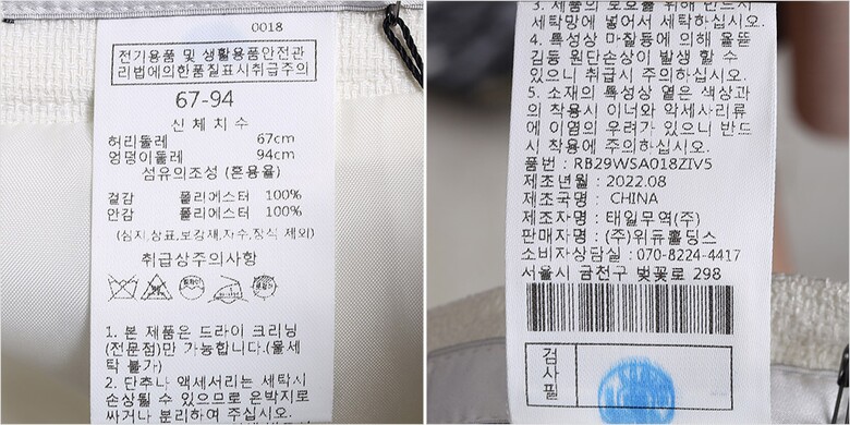 | 6. 세탁방법 및 취급시 주의사항 | 상세페이지 참조 |
