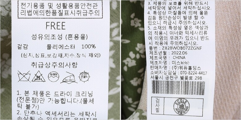 | 6. 세탁방법 및 취급시 주의사항 | 상세페이지 참조 |