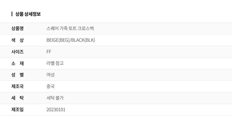 3. 색상 색상:BEIGE(BEG)/BLACK(BLK)