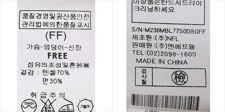 1. 제품 소재 (섬유의 조성 또는 혼용률을 백분율로 표시, 기능성인 경우 성적서 또는 허가서) 겉감-면30% 텐셀70%