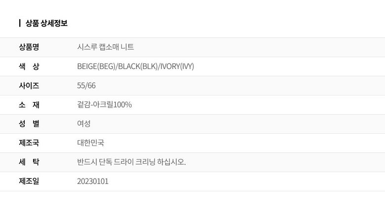 | 2. 색상 | 색상:BEIGE(BEG)/BLACK(BLK)/IVORY(IVY) |