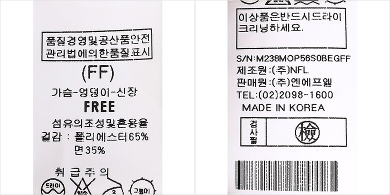 1. 제품 소재 (섬유의 조성 또는 혼용률을 백분율로 표시, 기능성인 경우 성적서 또는 허가서) 겉감-면35% 폴리에스터65%