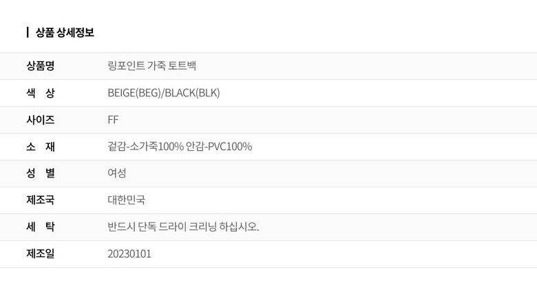 3. 색상 색상:BEIGE(BEG)/BLACK(BLK)