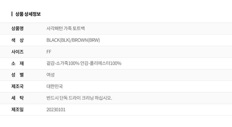 | 2. 소재 | 겉감-소가죽100% 안감-폴리에스터100% |