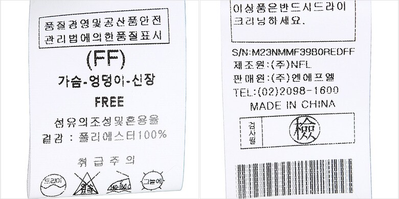 | 2. 소재 | 겉감-폴리에스터100% |
