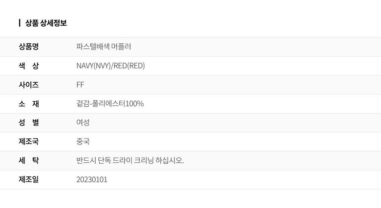 | 기타 기준 사항 | 상품불량에 의한 반품, A/S, 품질보증 및 피해보상 등에 관한 사항은 소비자 분쟁해결기준(공정거래위원회 고시) 구매자가 미성년자인 경우에는 상품 구입시 법정대리인이 동의하지 아니하면 미성년자 본인 또는 법정대리인이 구매취소 할 수 있습니다. |