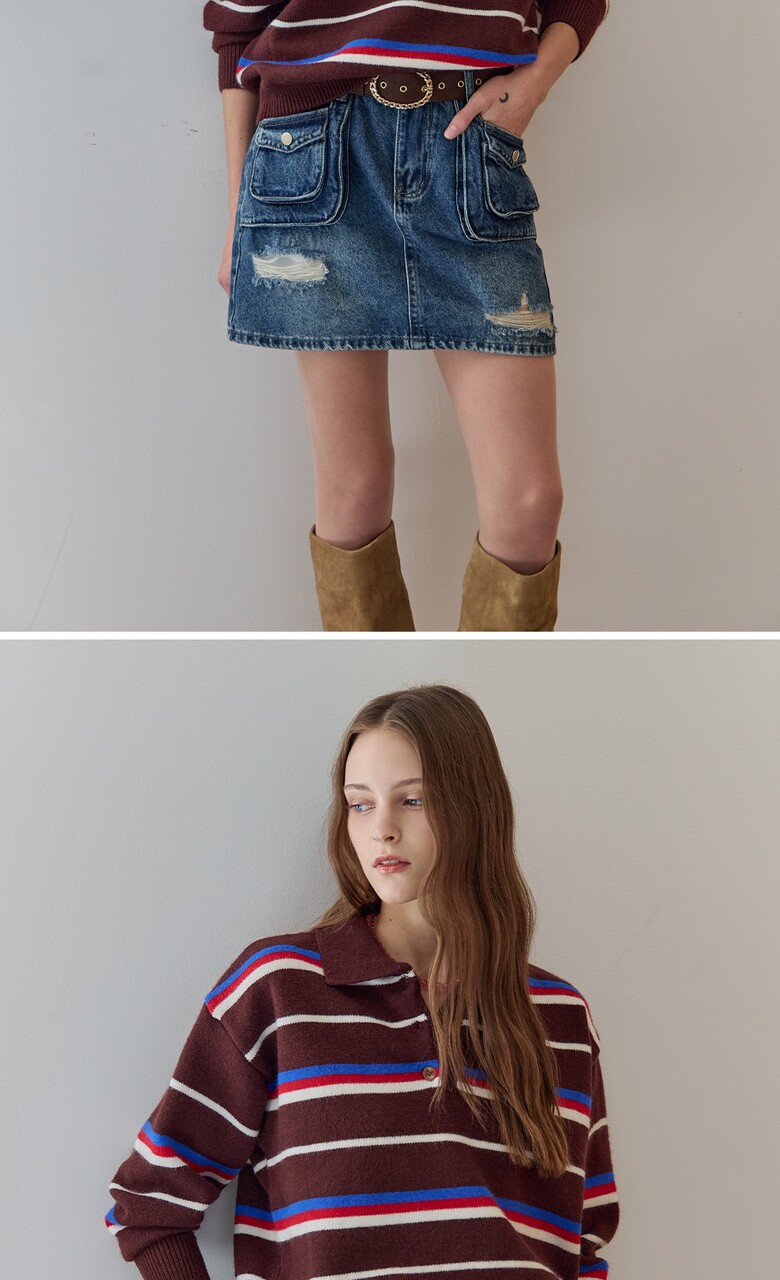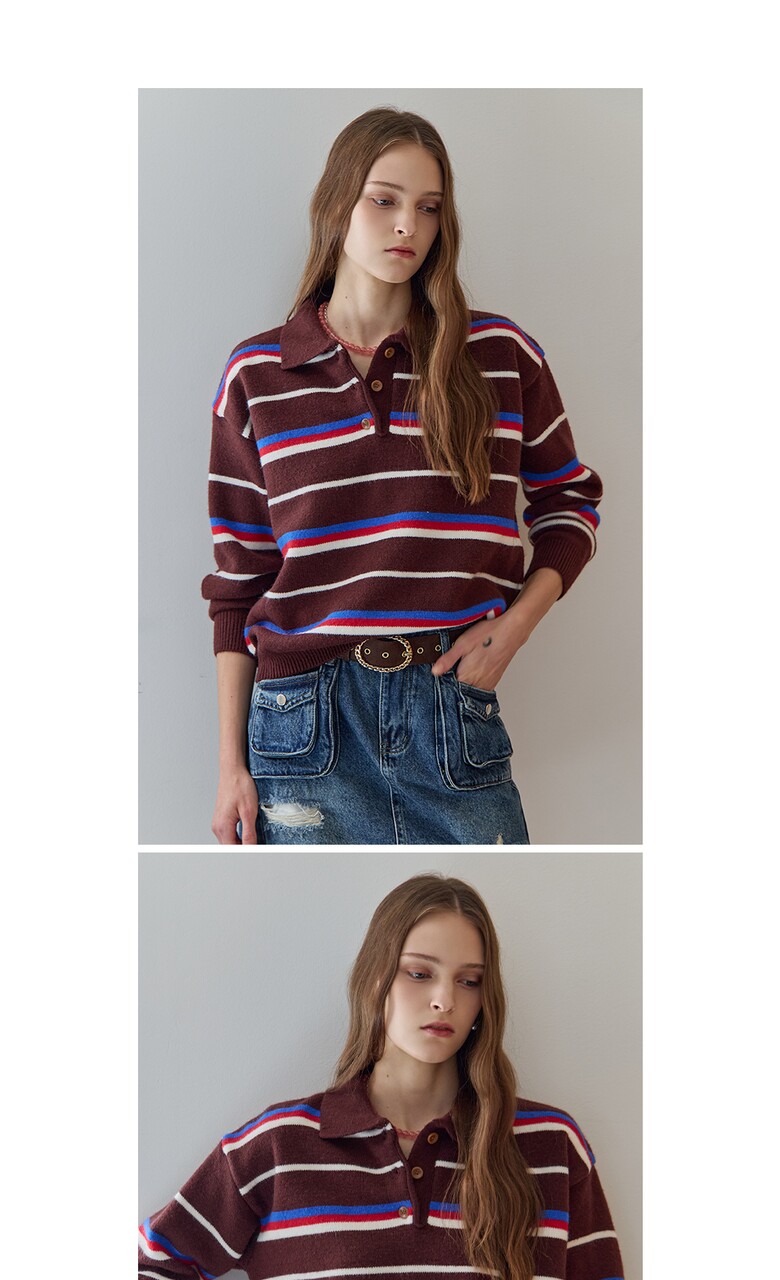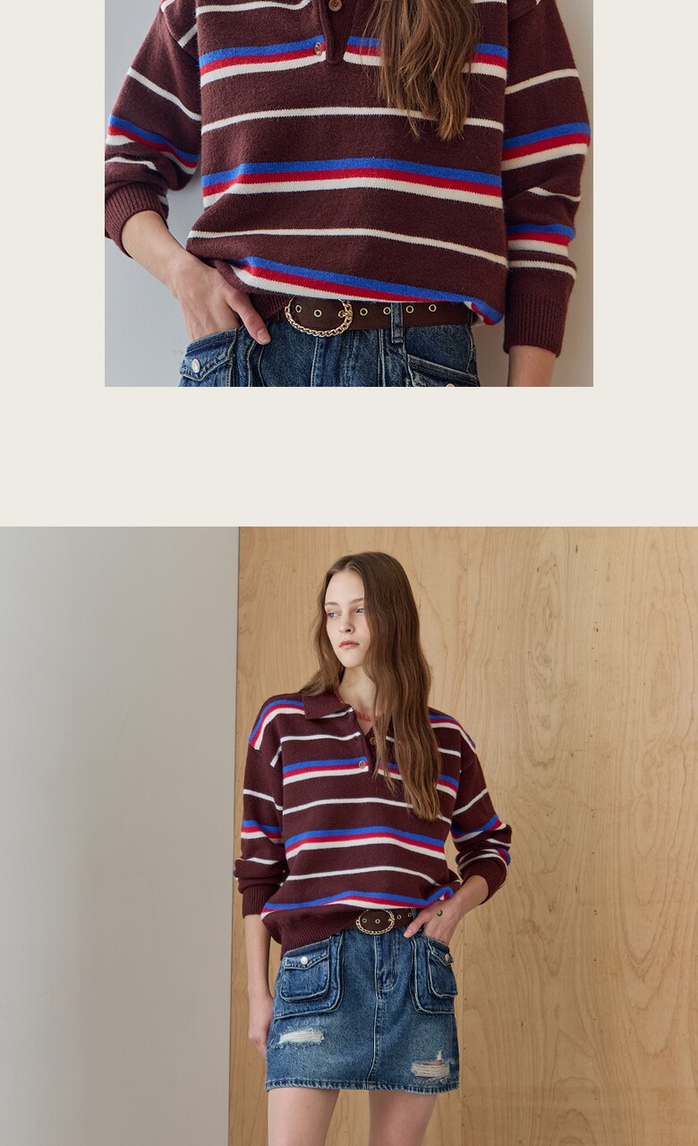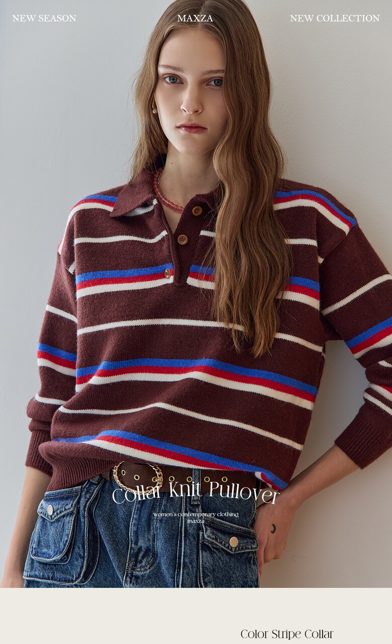경쾌한 포인트가 되는 카라 니트 풀오버입니다.