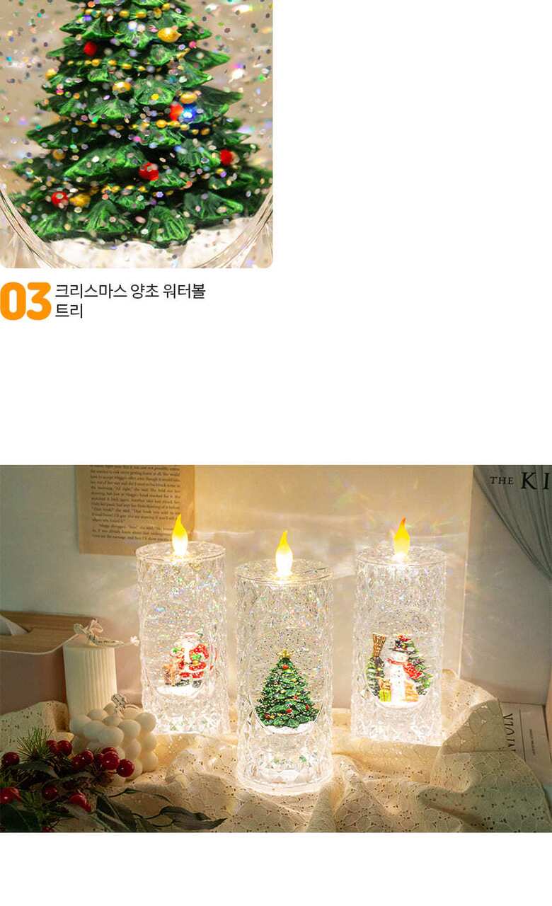 양초 캔들 크리스마스 워터볼 LED 스노우볼 무드등 조명