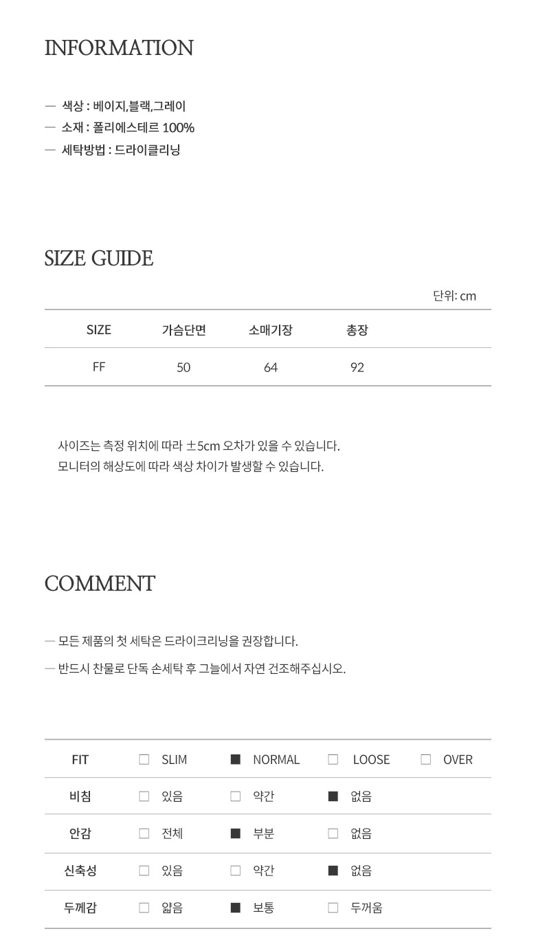 2. 색상 | BE_베이지/BK_블랙/GY_그레이 |