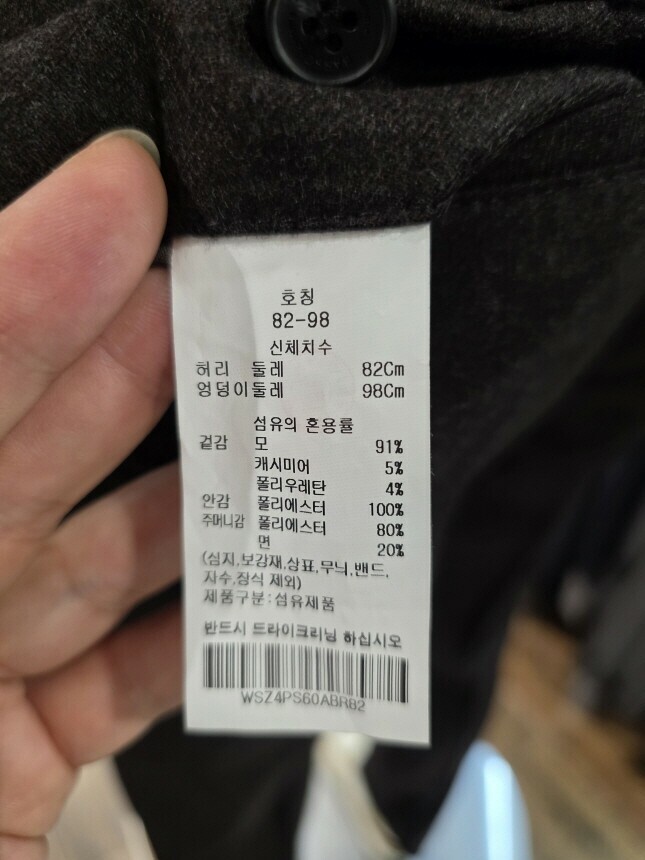 겉감 : 모 91% , 캐시미어 5% , 폴리우레탄 4%