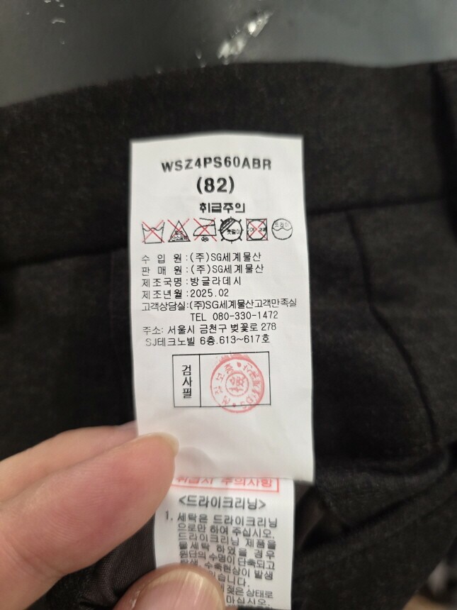 주머니감 : 폴리에스터 80% , 면 20%