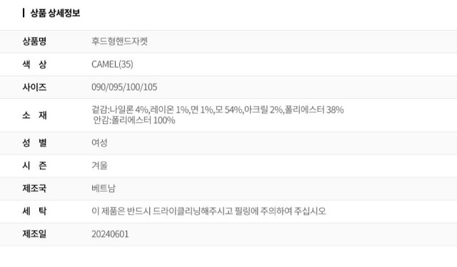 6. 세탁방법 및 취급시 주의사항 | 상품상세참조 |